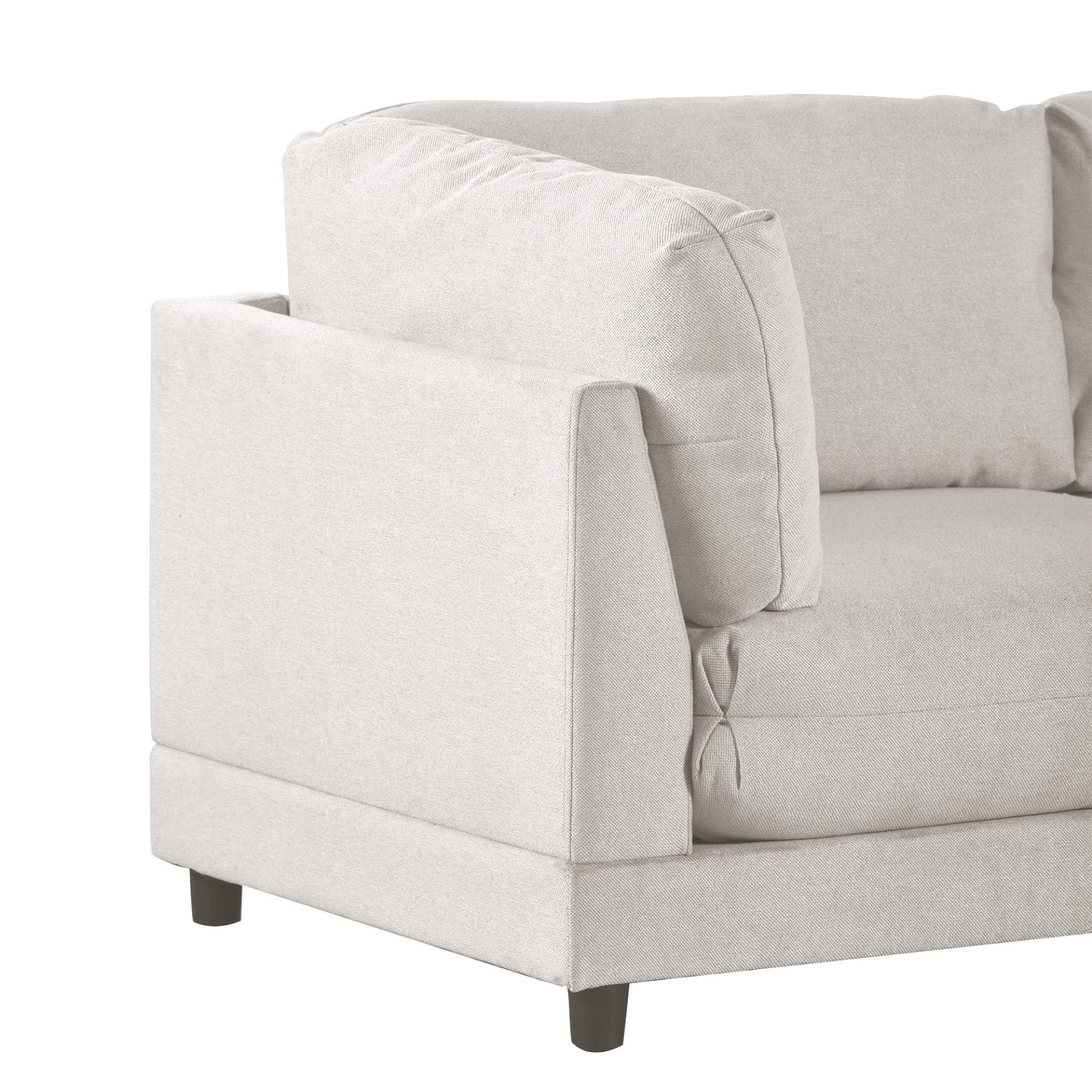 - Upholstered in polyester blend fabric with cushions featuring thick foam cushion padding for prime relaxation. Lean back and stretch out your legs out long on the chaise lounge when you or guests need more space.