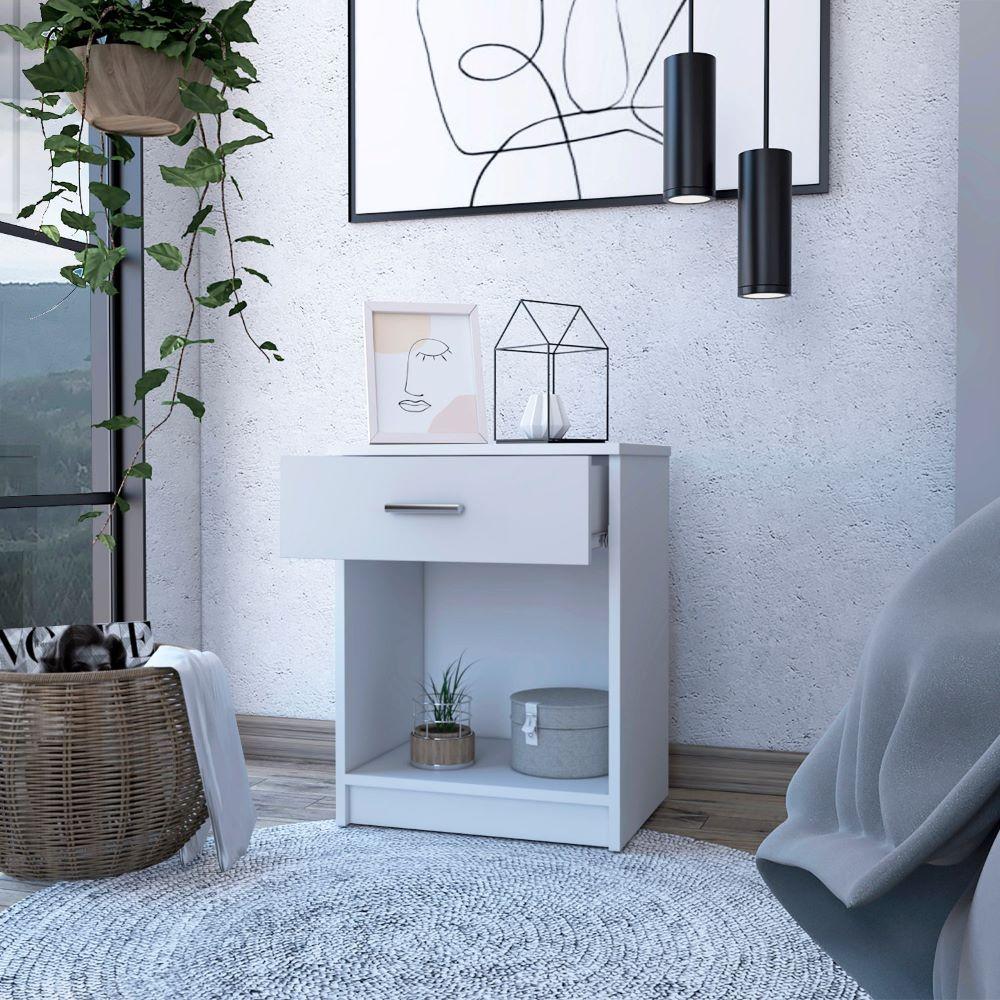 Nightstand Coco, Single Drawer, Lower Shelf, White Finish