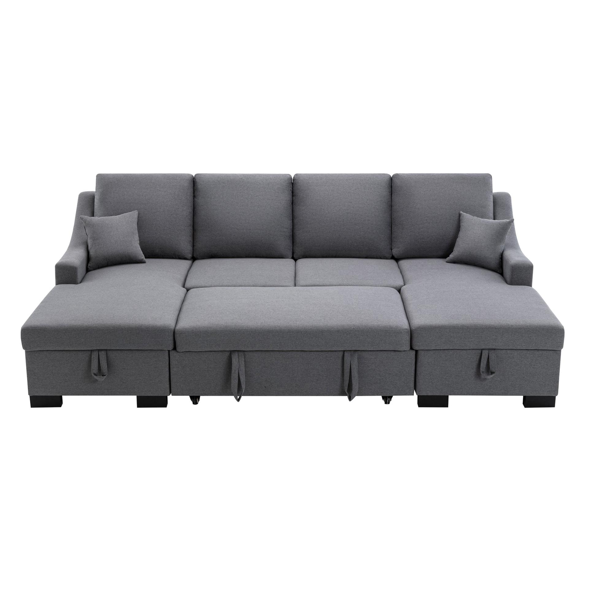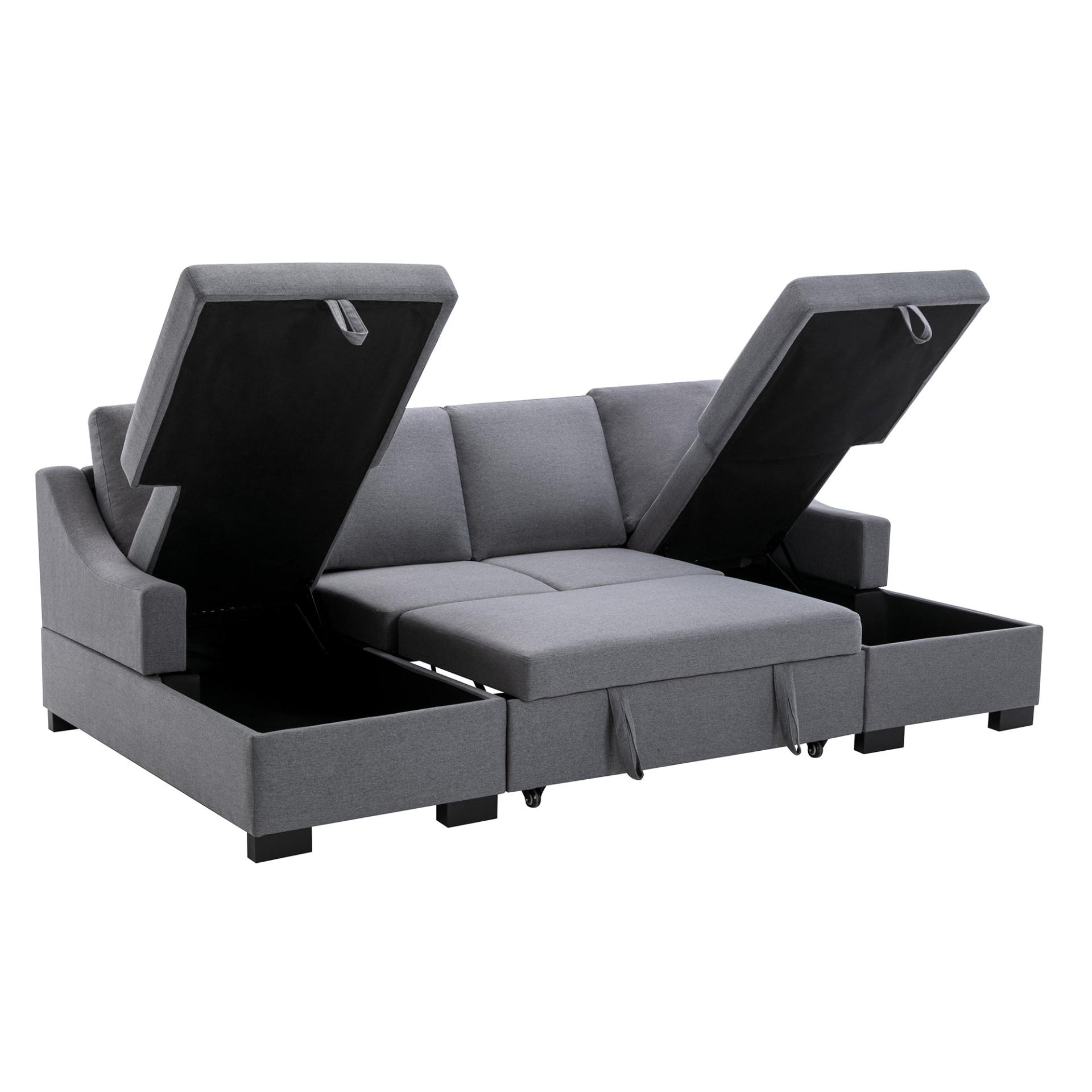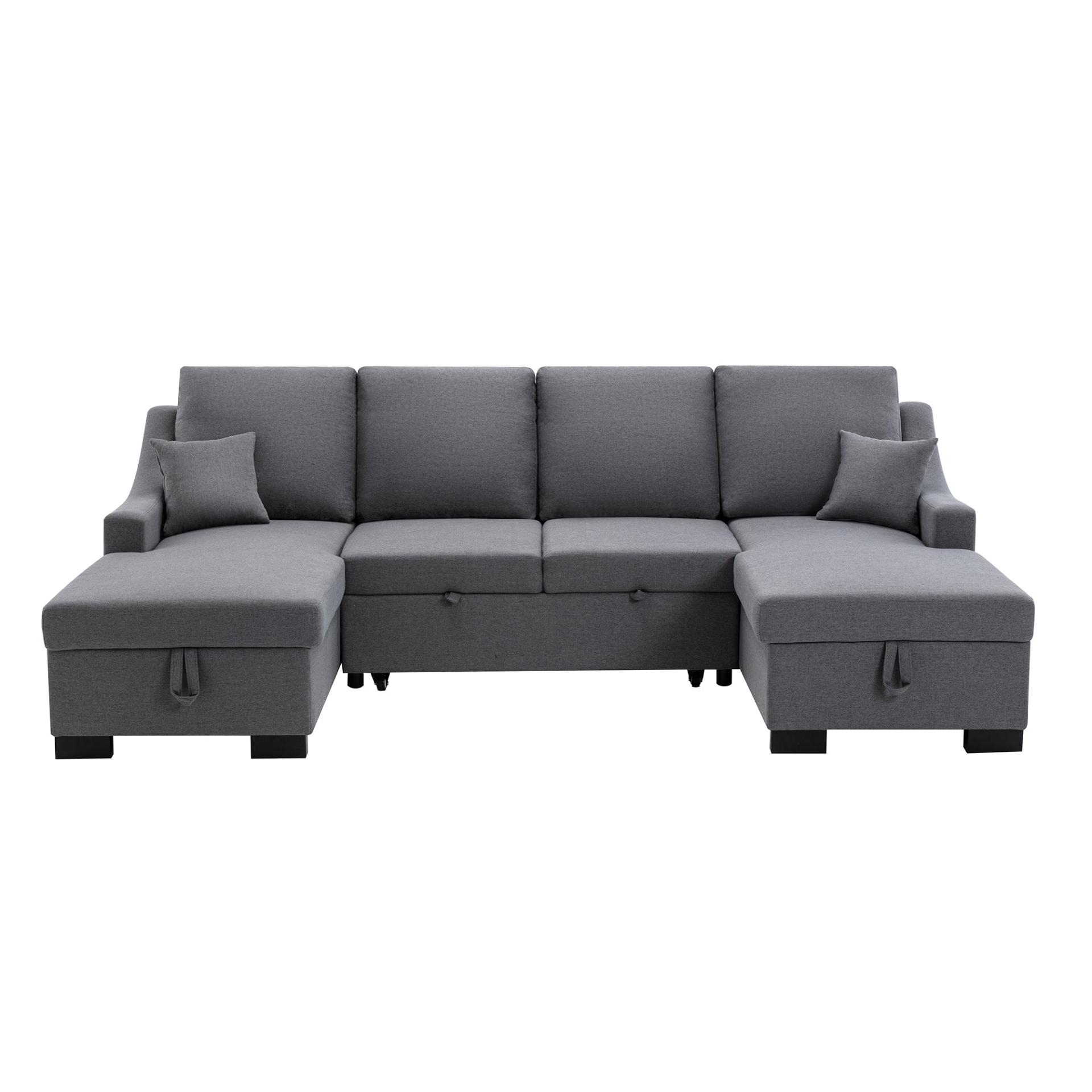 Upholstery Sleeper Sectional Sofa with Double Storage Spaces, 2 Tossing Cushions, Grey