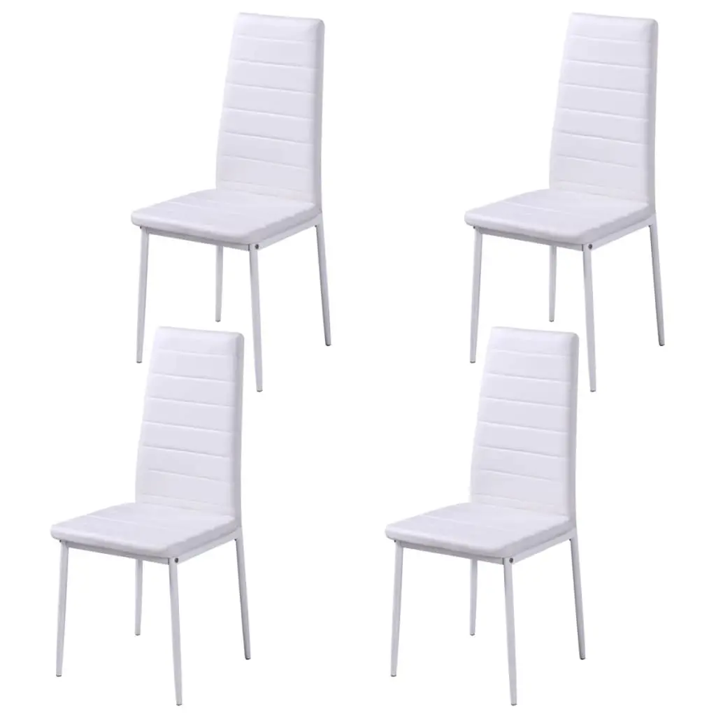 The table top is made of high-strength tempered glass which is easy to clean. Each chair is upholstered with high-quality artificial leather. The supple, padded seat is very comfortable.